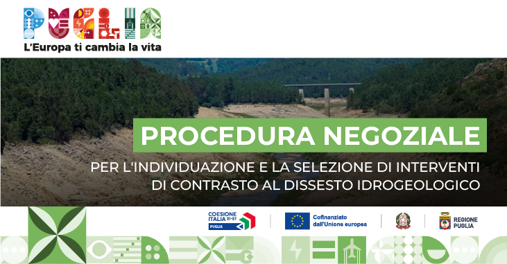 PR Puglia FESR-FSE+ 2021-2027 – Sub-Azione 2.5.1 e Sub-Azione 2.6.1 – Avviso avvio procedura negoziale per l’individuazione e la selezione di interventi di contrasto al dissesto idrogeologico presenti nella Graduatoria Regionale ReNDiS alla data del 28.05.2025