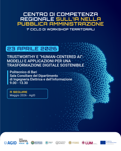 Centro di Competenza regionale sull’IA nella Pubblica Amministrazione: il 23 aprile workshop al Politecnico di Bari su Trustworthy e Human-Centered AI