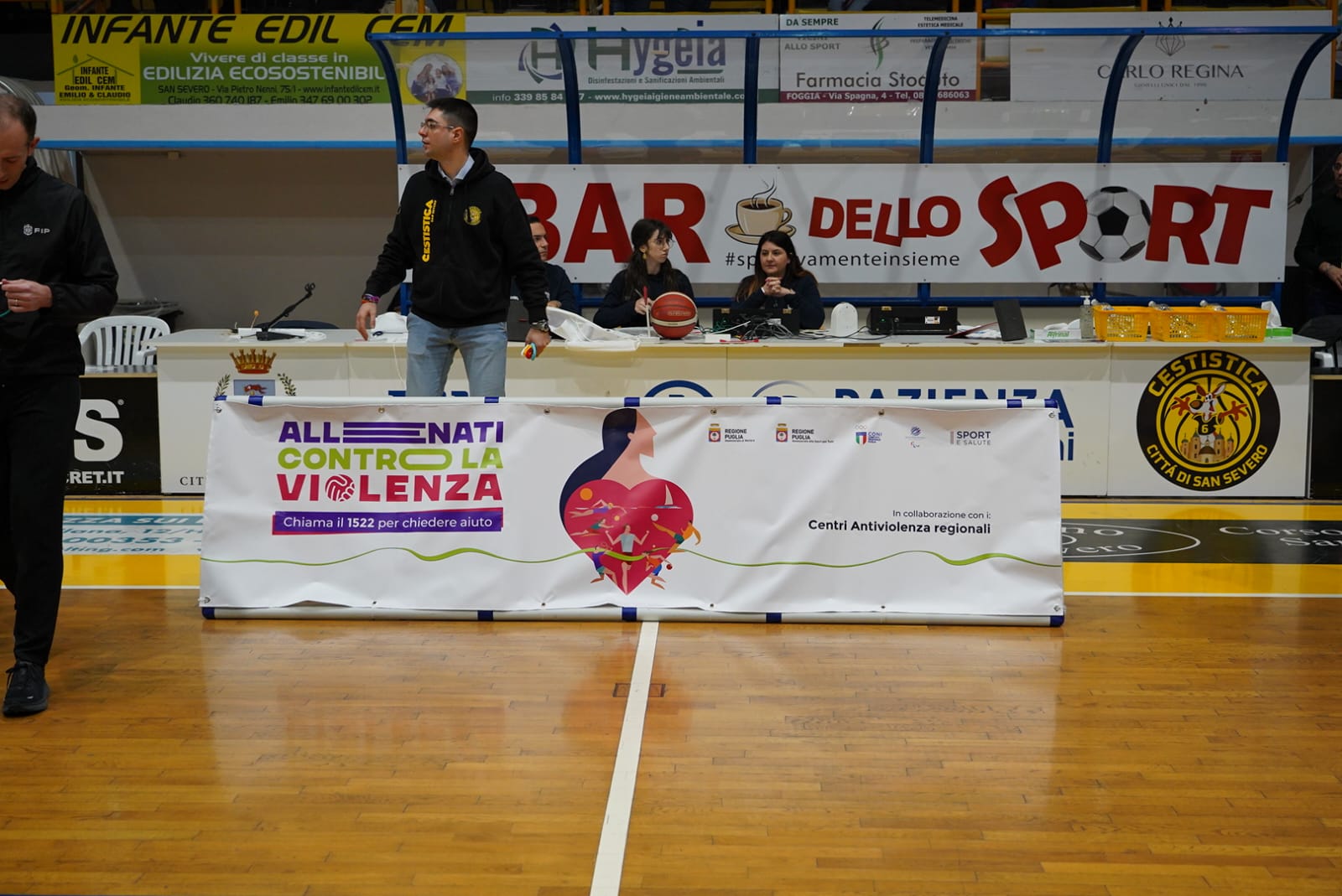Si è tenuta domenica 19 febbraio 2023 la settima tappa la campagna di comunicazione "Allénati contro la violenza", con il derby regionale di basket maschile Serie A2:  Allianz Pazienza Cestistica Città di San Severo vs HDL Nardò presso il Palasport Falcone e Borsellino di San Severo.