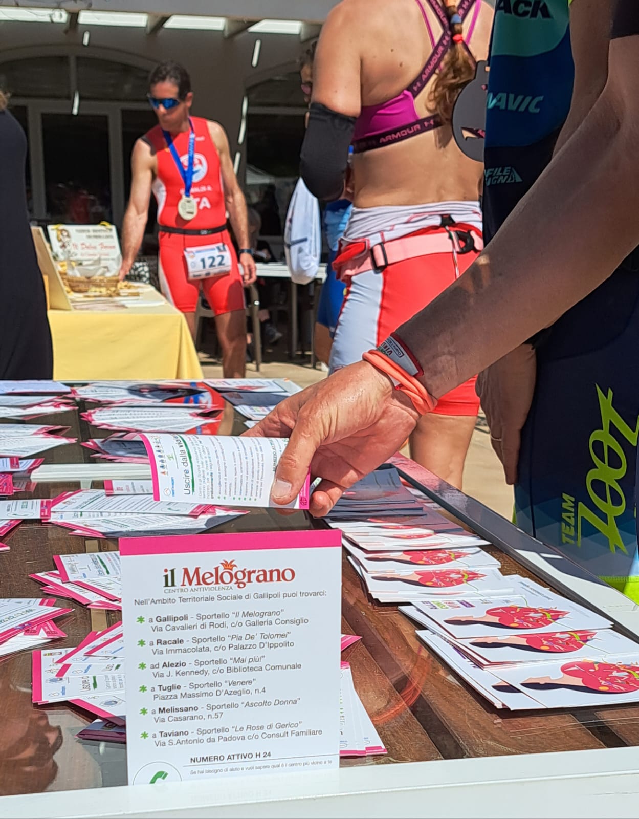 Organizzata dalla Salento Triathlon Enjoy, associata alla Federazione Italiana Triathlon – Fitri, l’evento ha ospitato la campagna regionale “Allénati contro la violenza”, con la presenza del Centro antiviolenza il Melograno –Medihospes, con le sue operatrici pronte a fornire tutte le informazioni.