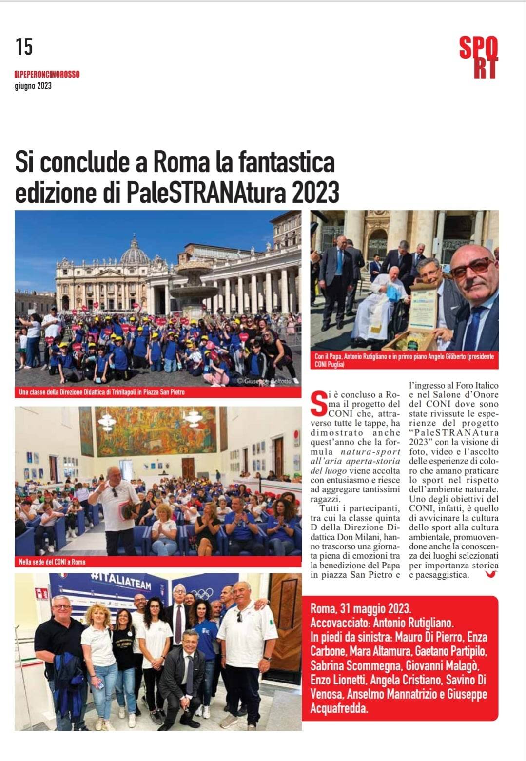Ha preso avvio il 5 aprile a San Ferdinando di Puglia la IV edizione di PalestrNATURA 2023, la manifestazione sportiva organizzata dal CONI Puglia, attraverso la sua Delegazione provinciale del territorio della Provincia di Barletta Andria Trani.