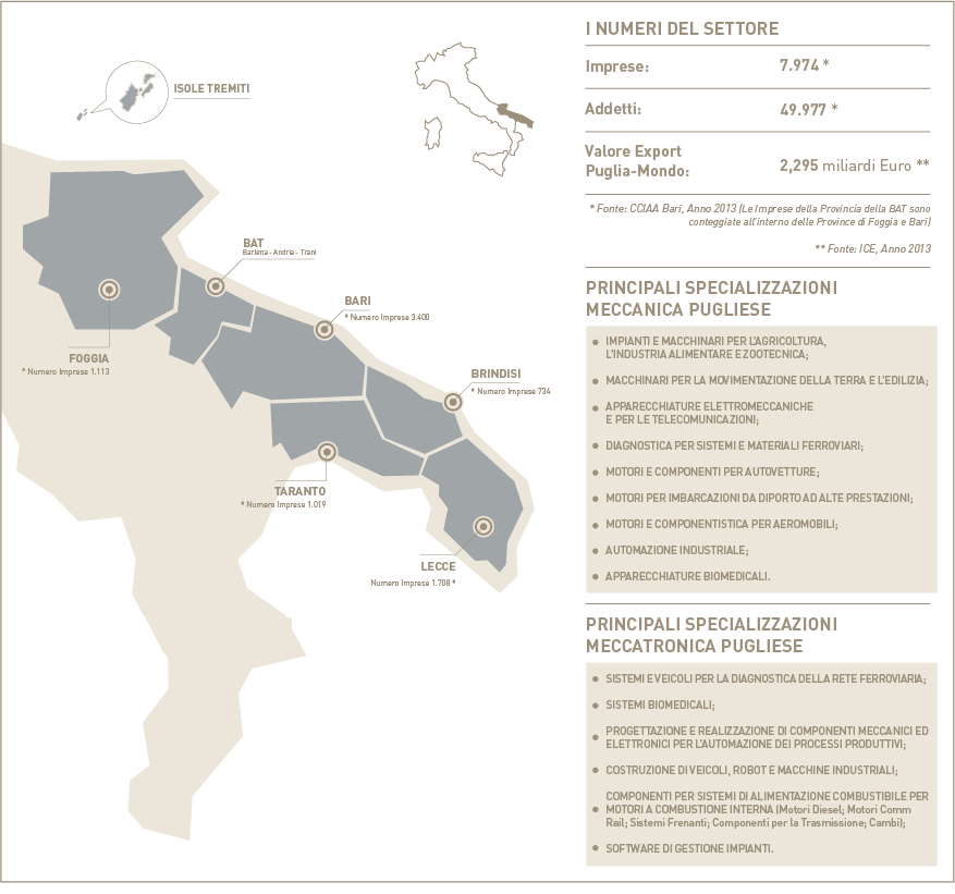 In Puglia la meccanica, soprattutto il comparto della meccatronica, ha trovato terreno fertile per radicarsi nel territorio e crescere fino a diventare oggi una realtà internazionale.