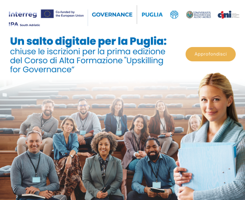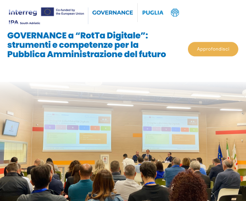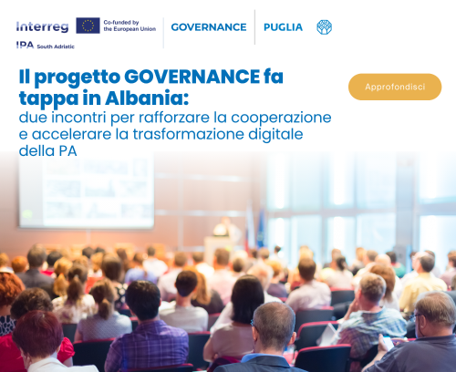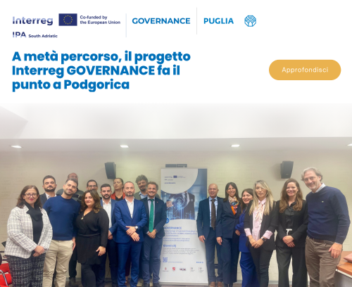 Il Progetto GOVERNANCE - Empowerment and simplification processes for a digital and good governed South Adriatic, finanziato dal Programma Interreg IPA South Adriatic 2021-27, rappresenta un elemento cardine nella strategia di innovazione amministrativa e di rafforzamento della dimensione comunitaria nell'area dell'Adriatico Meridionale.